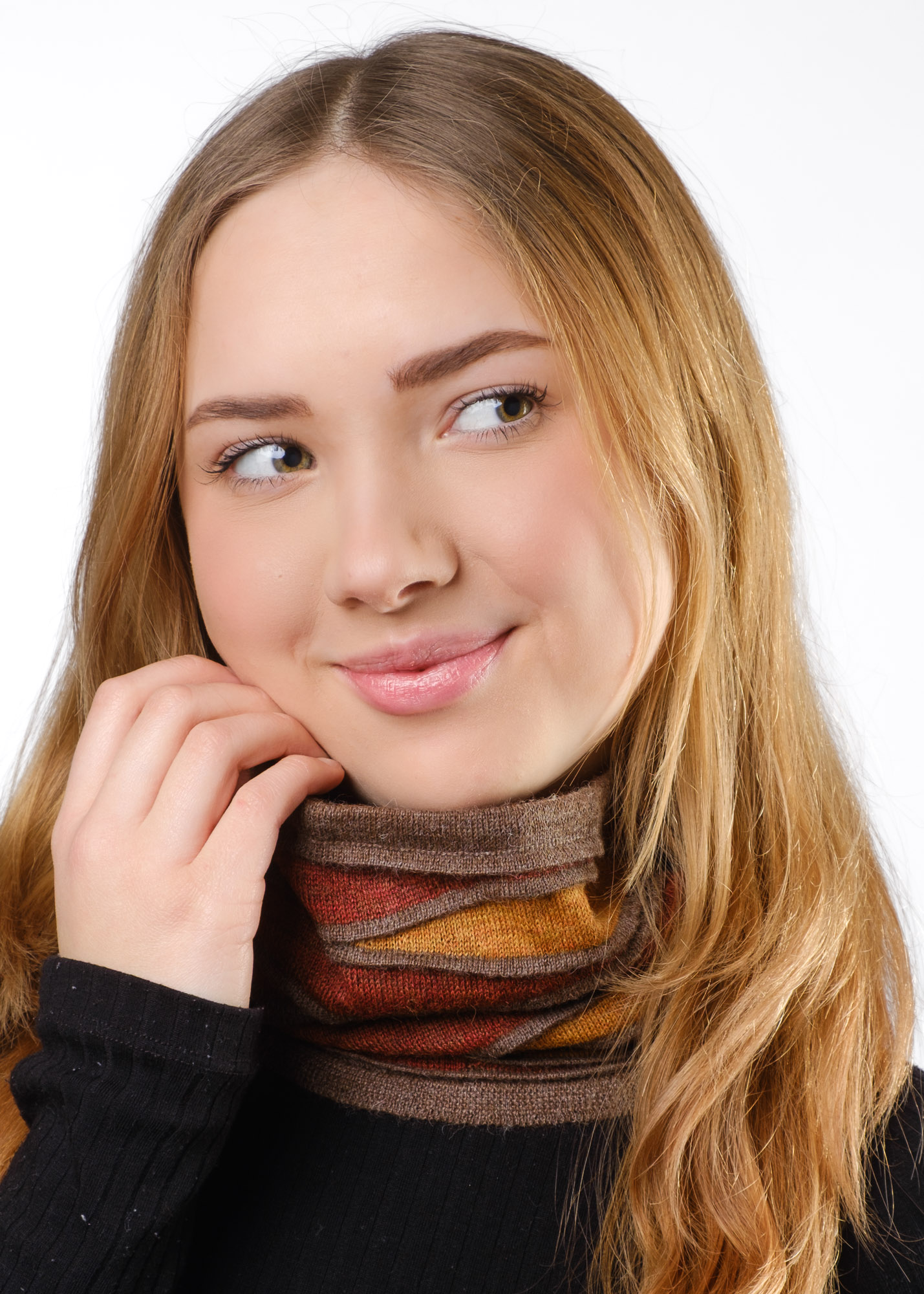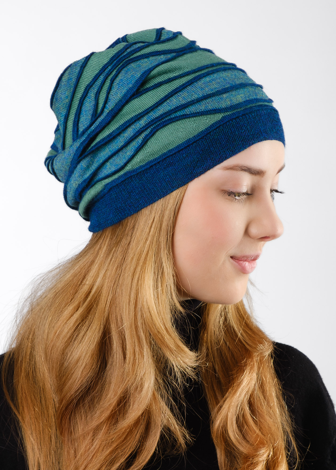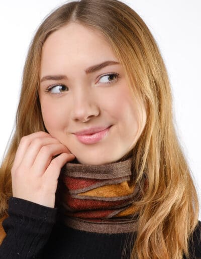 Mutifunktionskragen, Trasgbar als breites Stirnband, Mütze oder Bandana in leichtem Wellenstrick mit ausgefallenem Muster. Ein absoluter Hingucker und vielseitig einsetzbar.